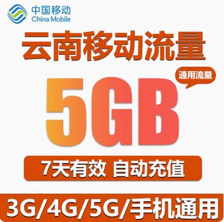 • 昆明移動流量充值5G通用移動7天流量疊加包